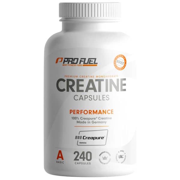 Du willst im Training neue Maßstäbe setzen, deine Leistung steigern und schneller Muskeln aufbauen? Dann sind die ProFuel® CREATIN Kapseln mit Creapure® genau das, was du brauchst! Creatin ist einer der am besten erforschten und wirksamsten Inhaltsstoffe im Bereich Sport und Fitness. Unsere Kapseln liefern dir reines, hochwertiges Creatin Monohydrat in praktischer Kapselform – für maximale Ergebnisse, egal wo du bist.